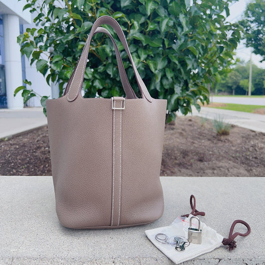 Hermès Sac Picotin Lock 22 Etoupe Taurillon Clemence Laiton Pall
