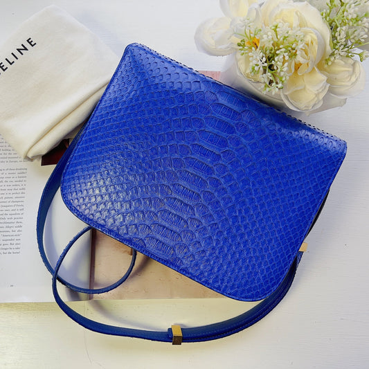 Celine Python Royal Blue Box GHW Medium Flap Handbag Cross Body Bag