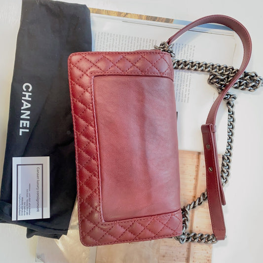 Chanel Medium Le Boy Burgundy Calfskin Silver Bag