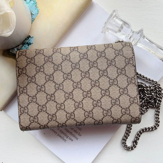 Gucci GG Supreme Monogram Mini Dionysus Chain Wallet Beige Bag