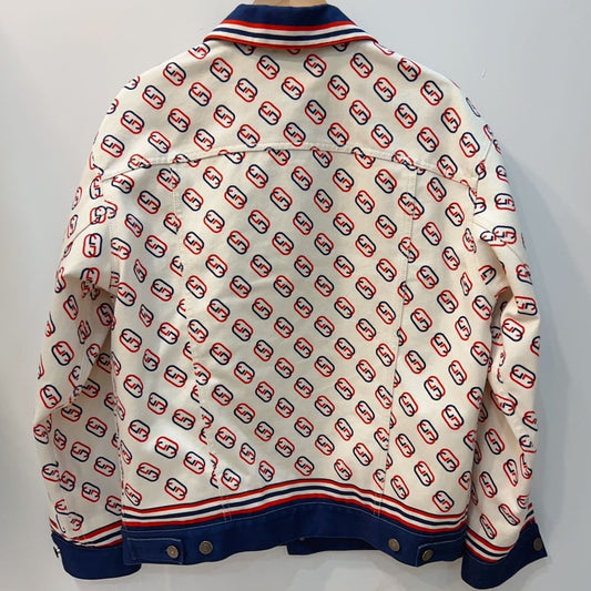Gucci Logo Jacket Monogram Denim GG Printed Twill Jacket in White Size44
