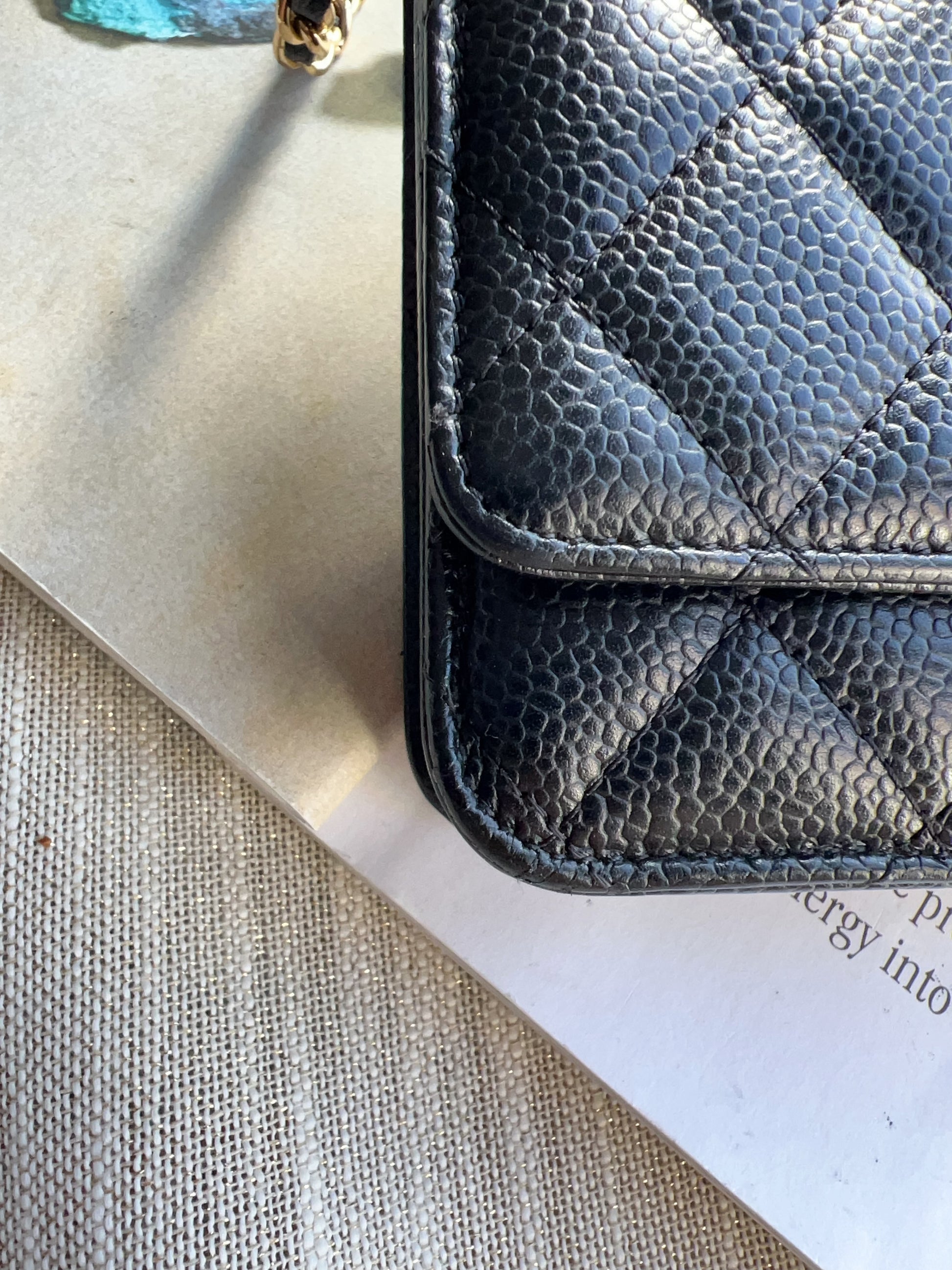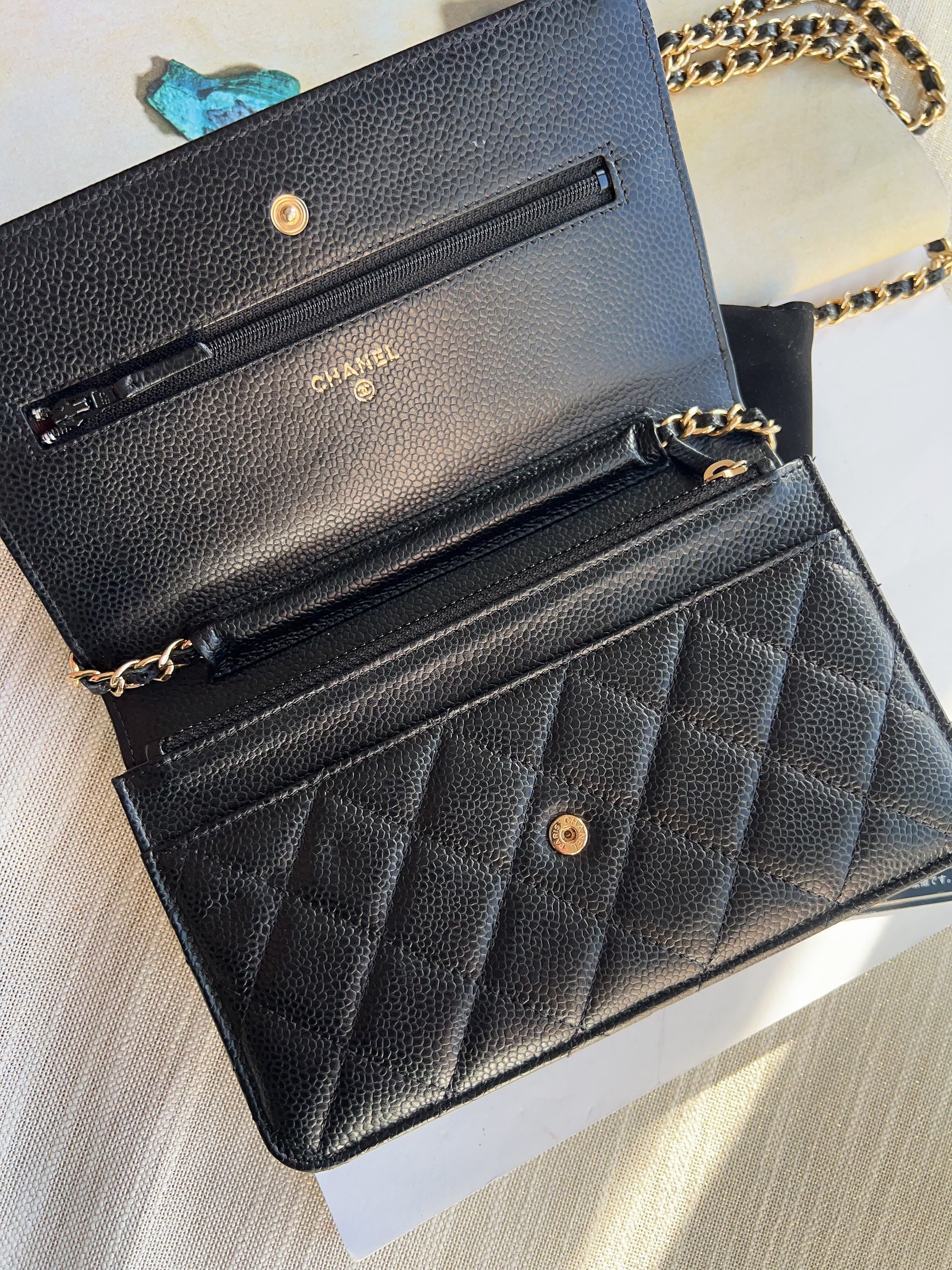 Chanel Caviar Classic Wallet On Chain Black Gold