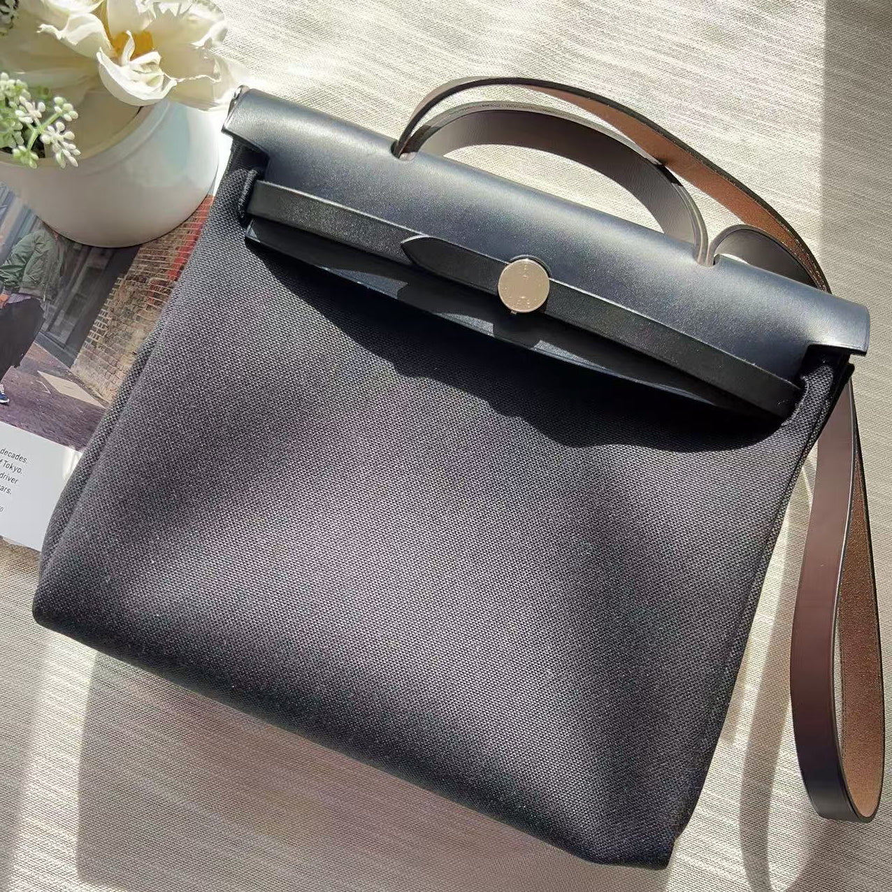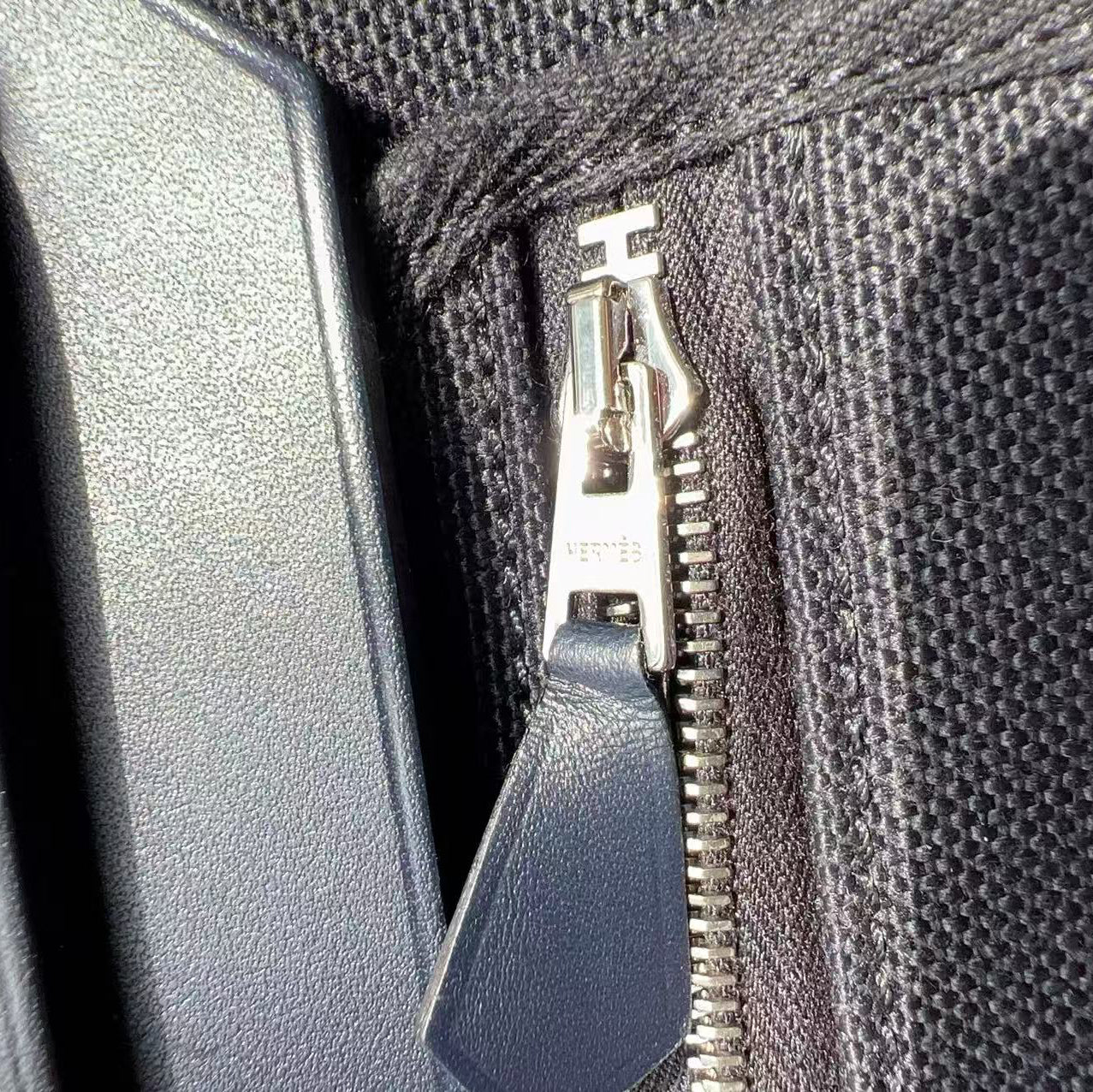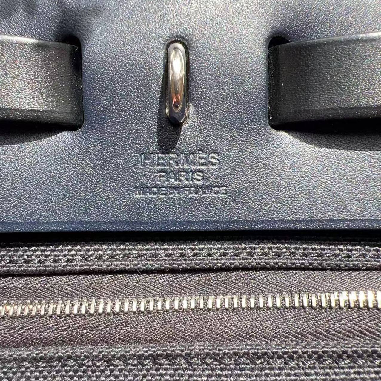 Hermes Herbag Zip Retourne 31 PM Toile Vache Hunter Black and Dark Blue PHW