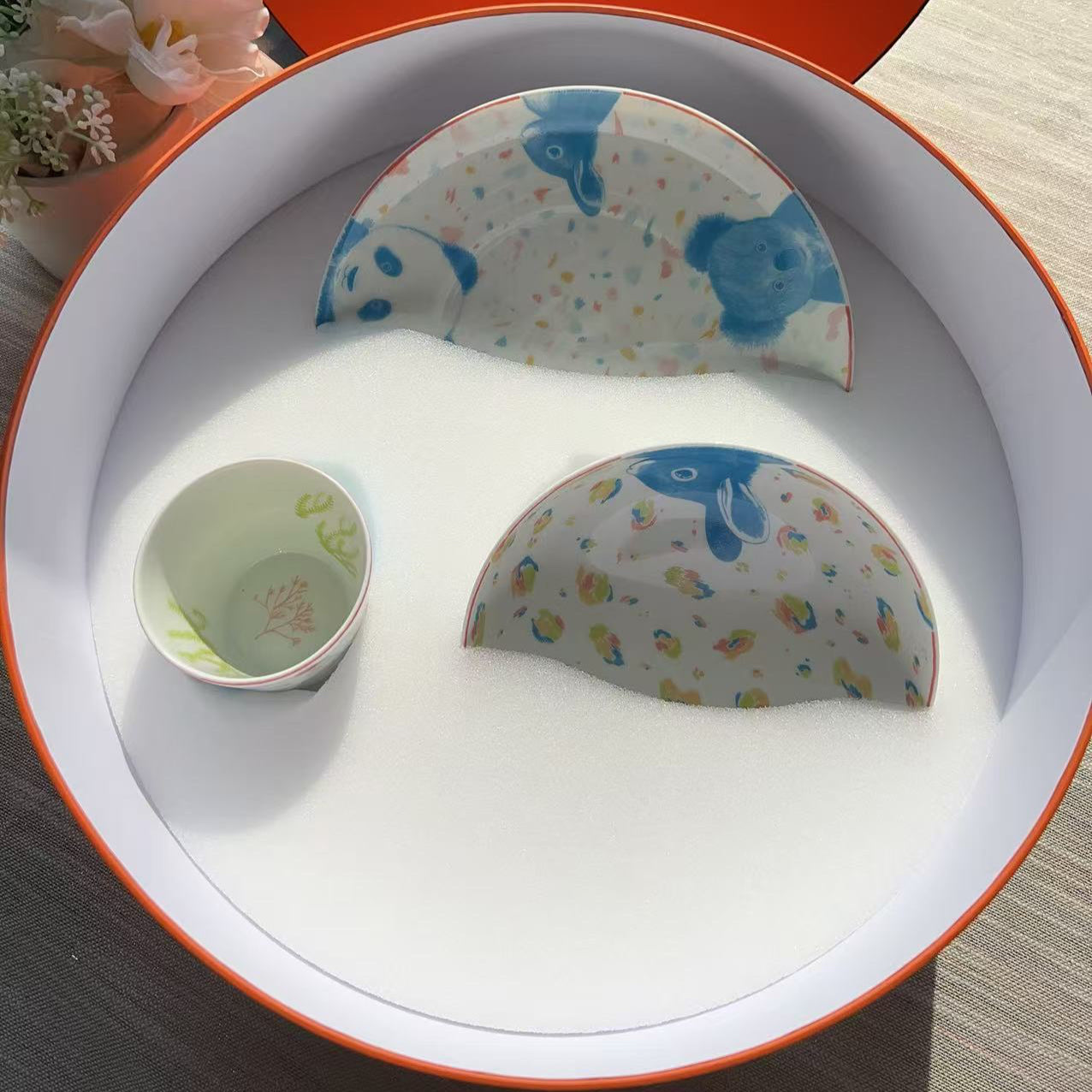 Hermes Set Of 3 pieces. Includes dessert plate, cereal bowl and tumbler in porcelain