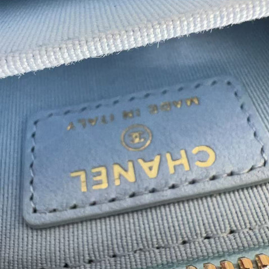 Chanel Lambskin Quilted Zip Around Coin Purse Wallet Light Blue