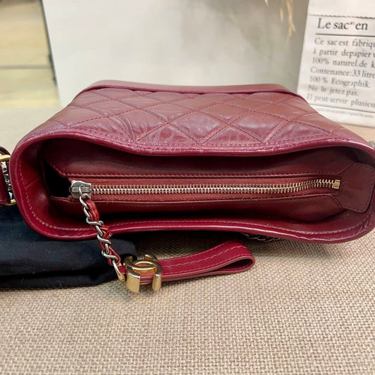 Chanel Aged Calfskin Quilted Small Gabrielle Hobo Burgundy