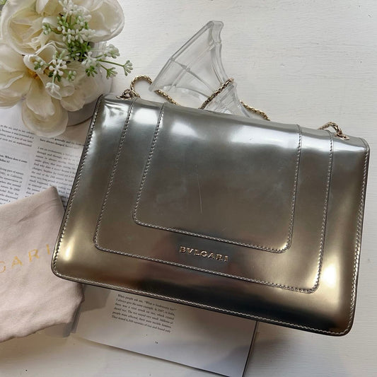 BVLGARI Metallic Calfskin Serpenti Forever Crossbody Bag Silver