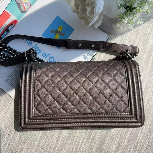 Chanel Calfskin Quilted Medium Boy Flap Dark Silver