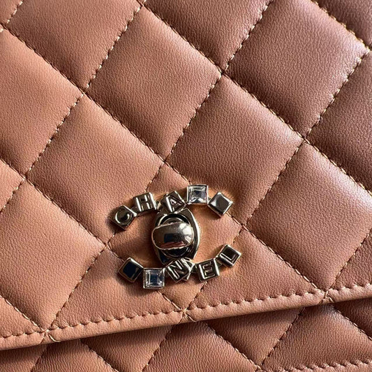 Chanel Lambskin Crystal CC and Top Handle Camel