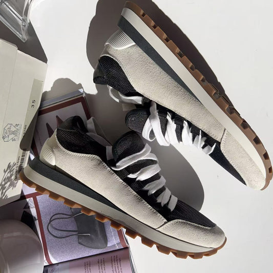 BRUNELLO CUCINELLI Black Sparkle & Beige Woman Sneakers35 New