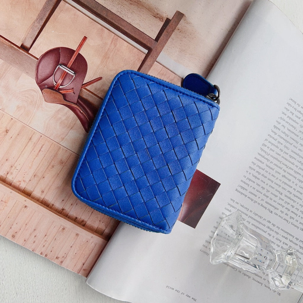 Bottega Veneta Nappa Intrecciato Zip Around Coin Purse Blue