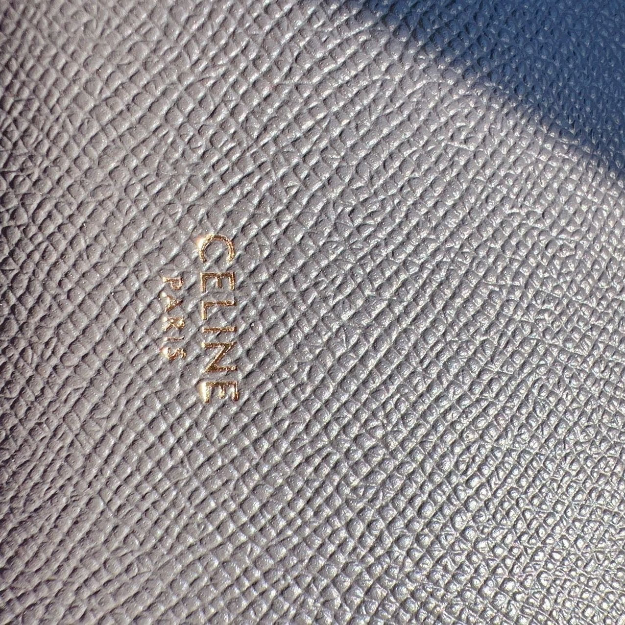 This Celine Micro Belt Bag is crafted of calfskin leather in Grey with a structured and spacious silhouette. The bag details a leather strap top handle, an optional shoulder strap with brass hardware, and a front-facing flap that is decorated by knotted straps.