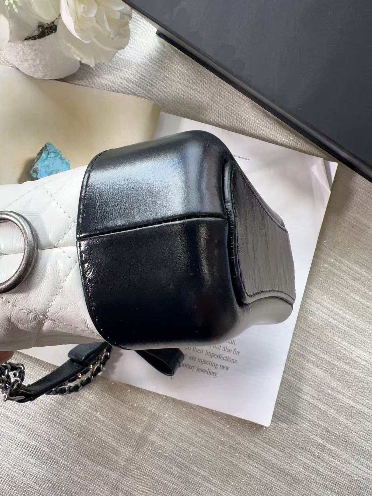 Chanel Gabrielle Hobo Small Calfskin Quilted Black White MHW