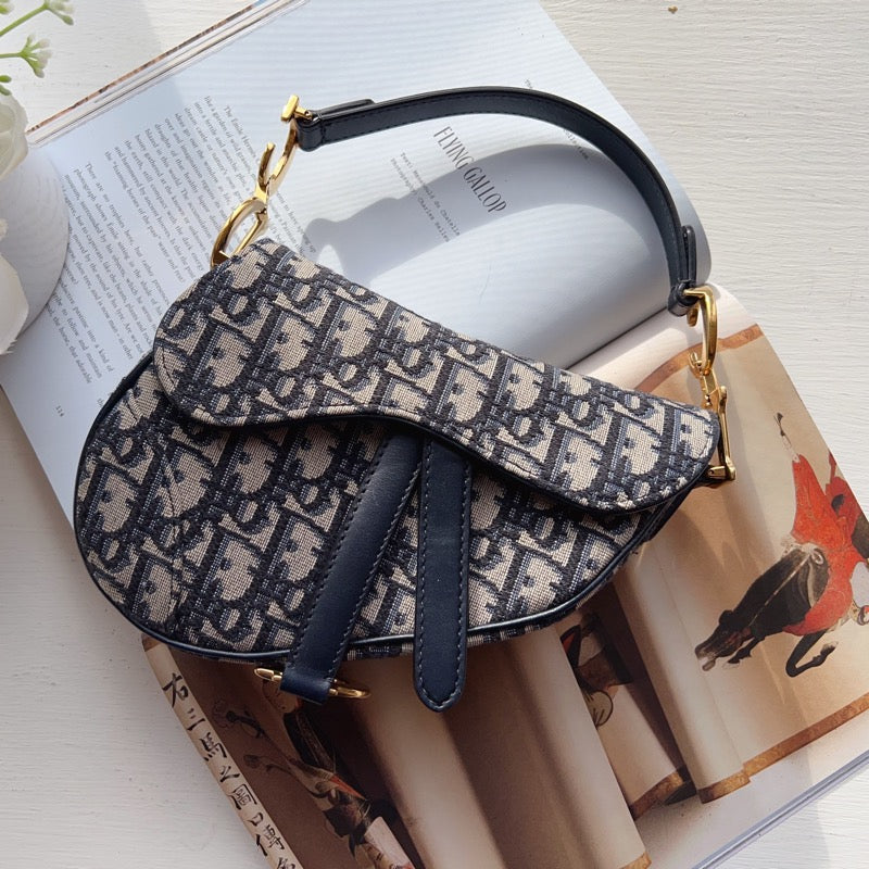 Christian Dior Top Handle Bag, blue printed canvas with gold-Tone Hardware