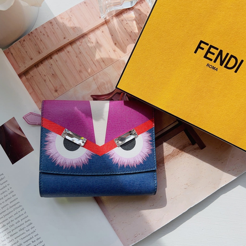 Fendi Monster Trifold Wallet Leather with Crystals Compact