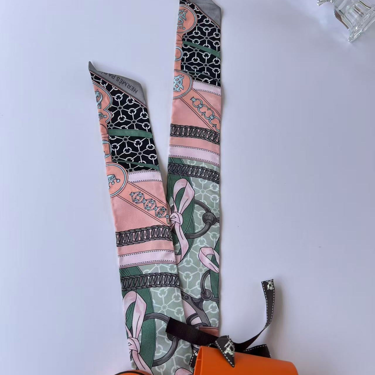 Hermes Silk La Promenade Du Matin Noir Rose Poudre Celadon