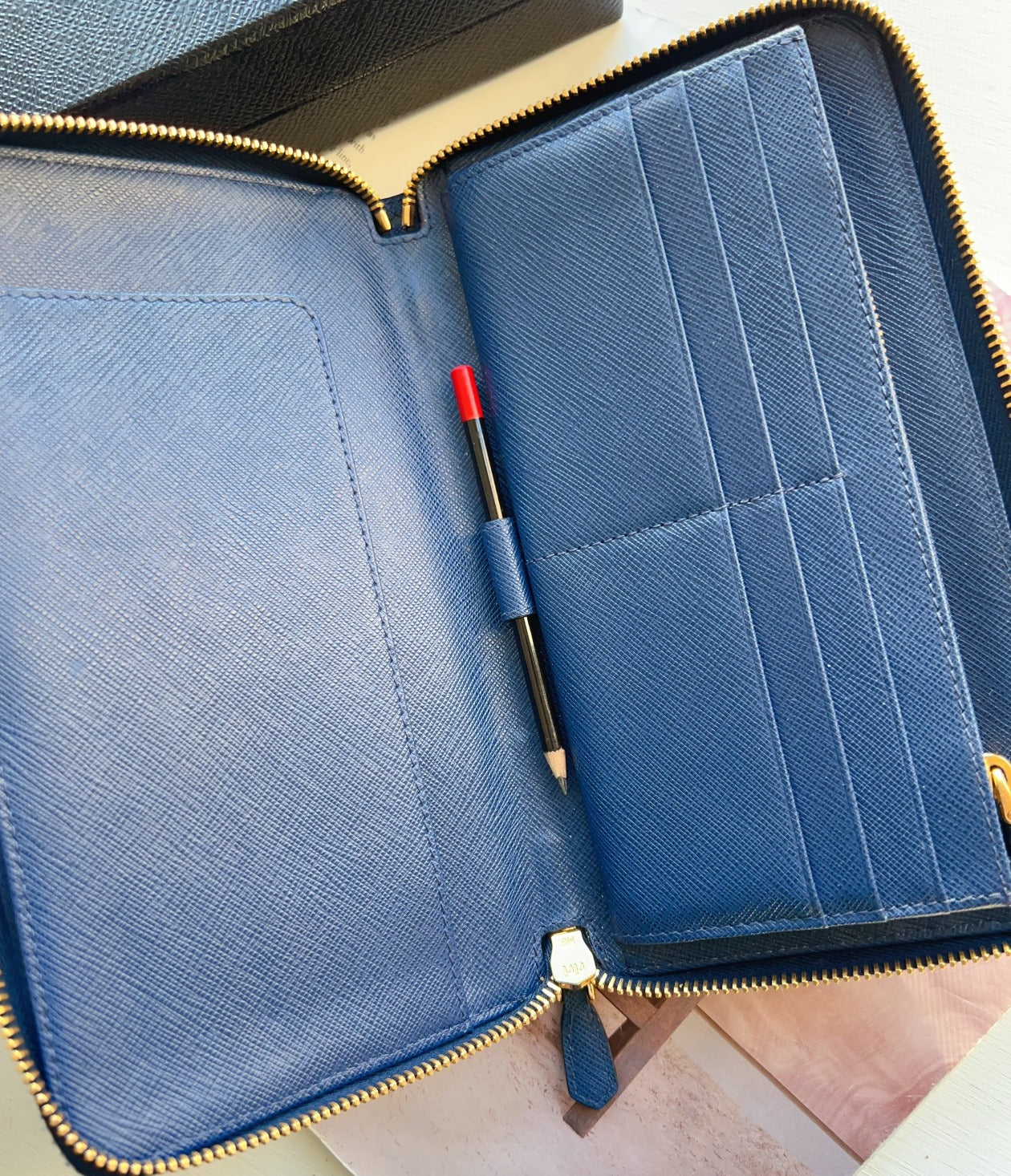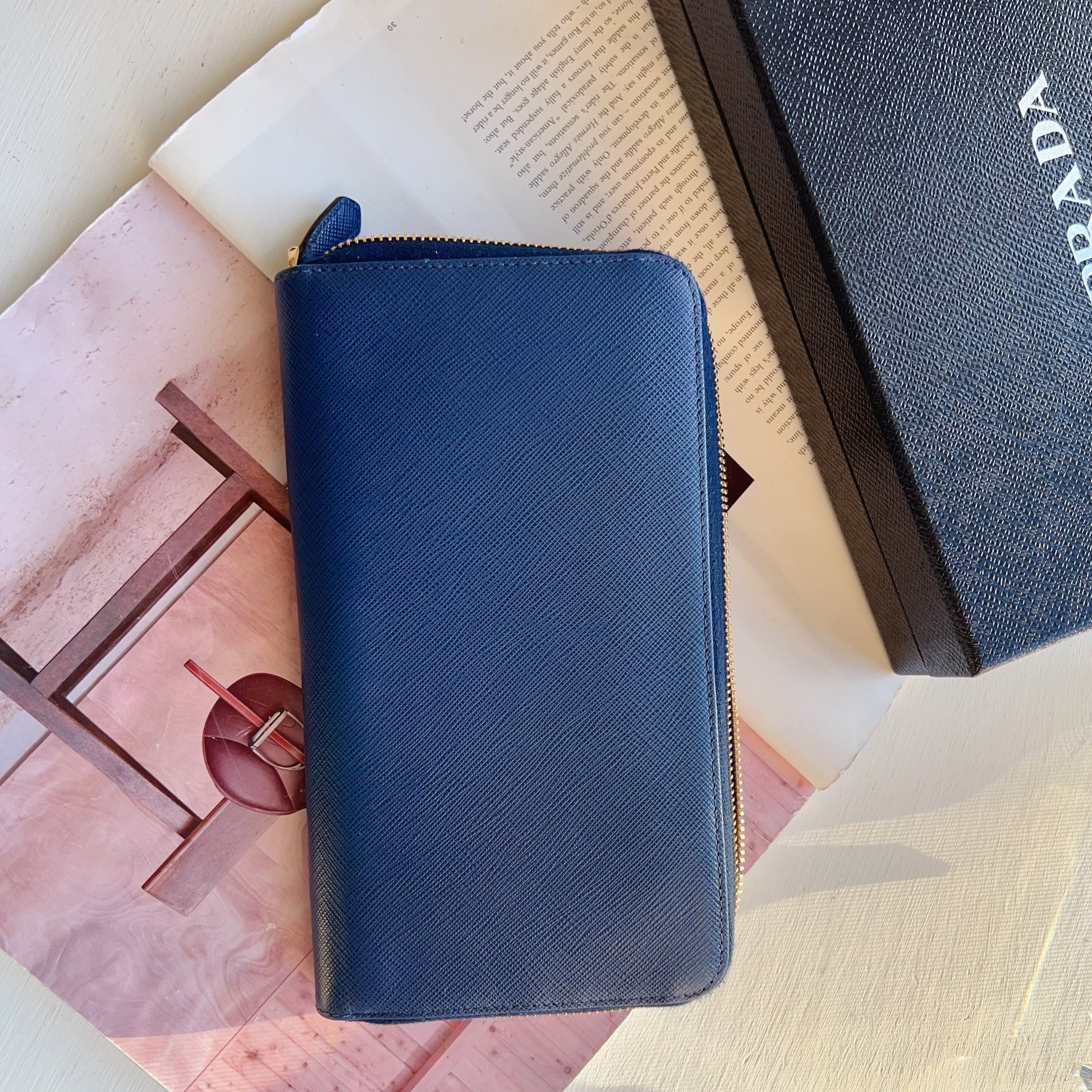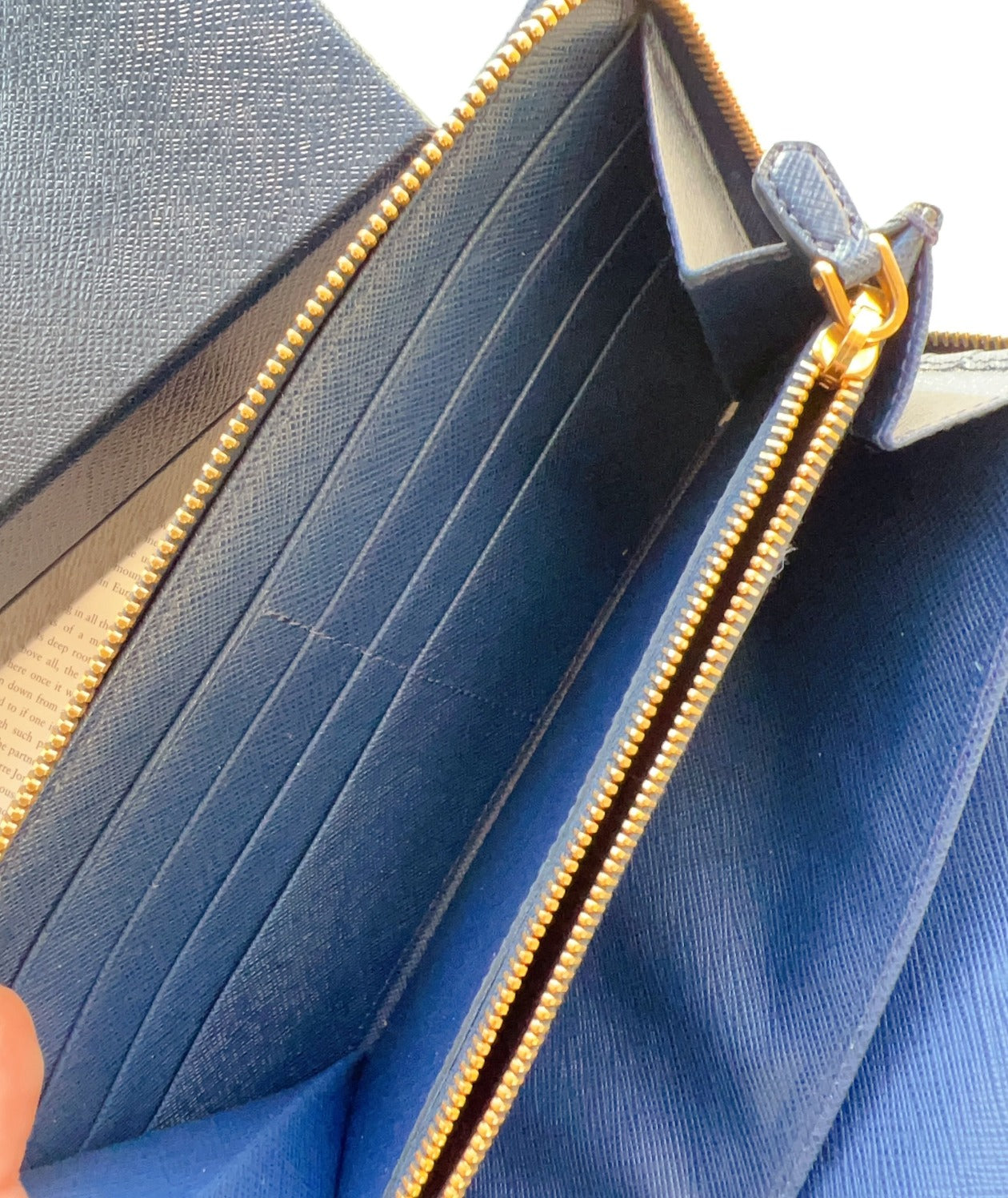 Prada Wallet Blue Lux Leather with Silver-Tone Hardware